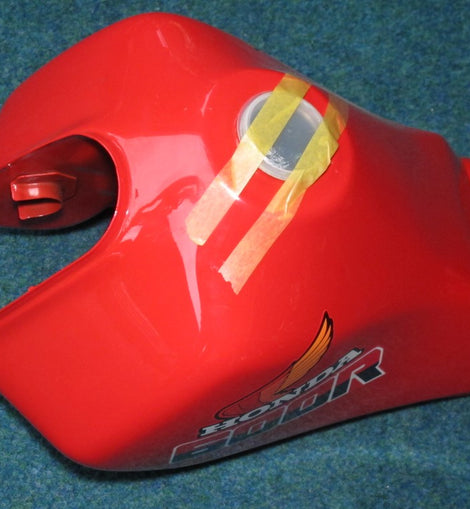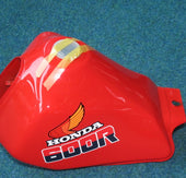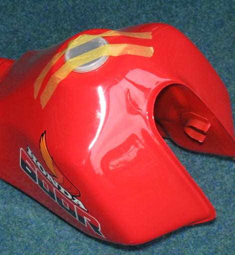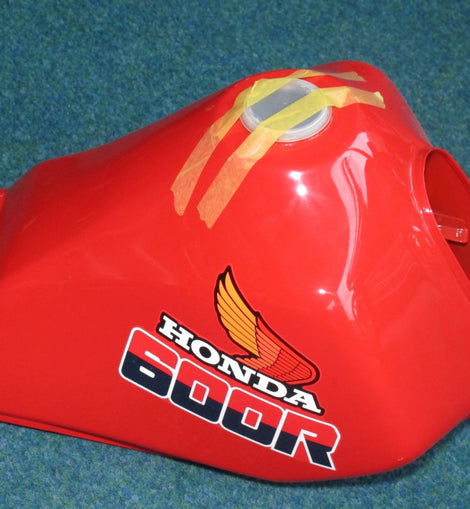 Honda XL 600 Re fuel tank for model PD03, red with blue warning sticker, NEW, condition as shown in photos