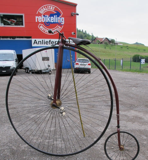Vielen Dank. Dieses extrem rare Fortbewegungsmittel zu den Anfängen der Mobilisation macht noch mehr Spass im Vorführen mit einem Frack und Hut.