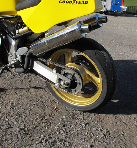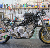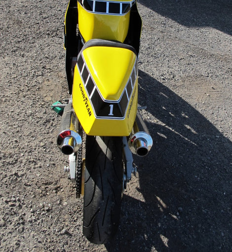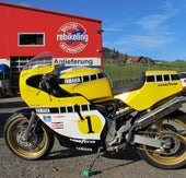 Vielen Dank. Diese wunderschöne Kopie einer echten Werksrennmaschine ist der Hingucker auf der Rennstrecke. Dieser 2-Zylinder 850ccm 4-T Motor macht sehr Spass zum fahren auf abgesperrtem Gelände.
